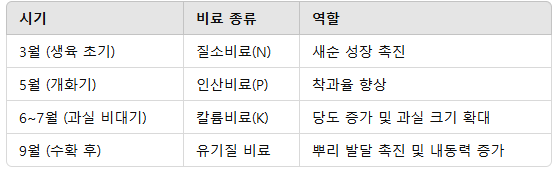 - 충분한 일조량(6시간 이상)이 과실 당도를 높이는 핵심 요소