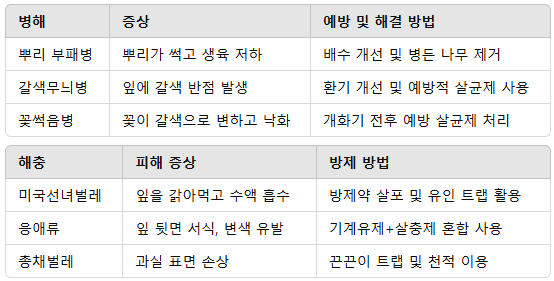 - 가지치기 및 병해충 관리로 생육 환경 개선