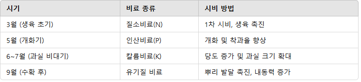 - 물 부족 시 열매 크기 감소, 잎 마름 발생