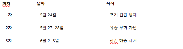 4. 약제 살포 – 총 3회 반복 방제 계획