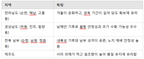 • 햇빛: 고당도 확보를 위해서는 일조량이 풍부한 곳이 필수.