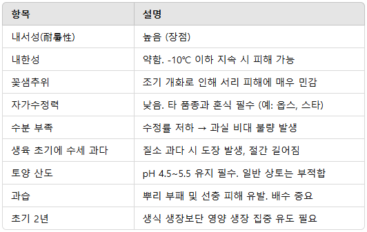 단, 조생종 특성상 꽃샘추위와 자가수정력 부족은 주요 리스크이므로, 혼식 및 환경 제어가 병행되어야 하며, 뿌리 부패와 과습 관리에도 주의를 기울여야 합니다.