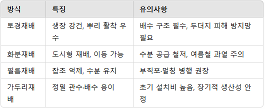 - 다양한 재배 방식(토경, 화분, 필름 등)에 대응 가능